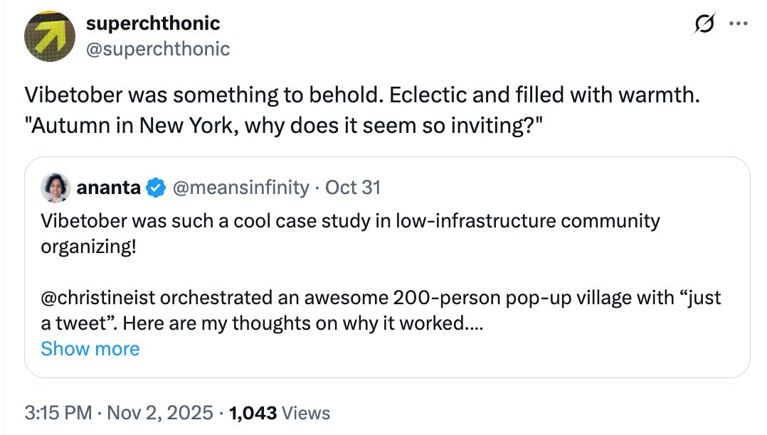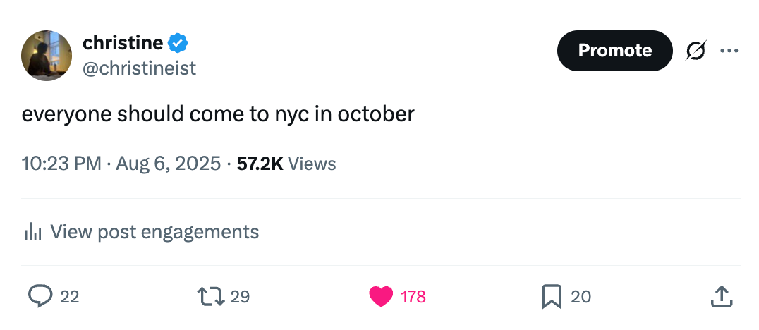In October 2025, ~200 people from around the world descended upon New York City for varying stays throughout the month.